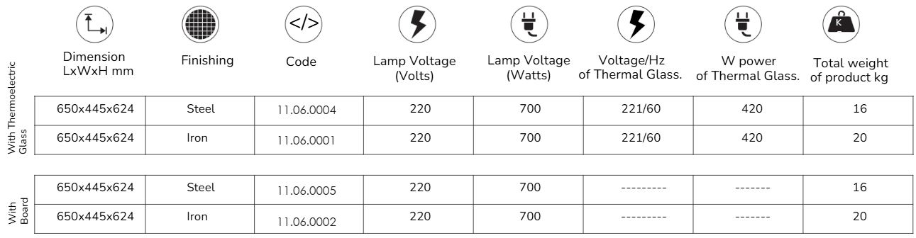 It can be produced with stainless steel or carbon steel. Equipped with a food cutting board, in white polyethylene or in conjunction with the Thermoelectric Glass for heated food maintenance.
