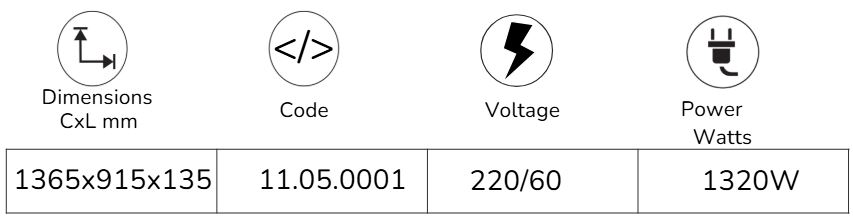 It has 2 Glasart Thermoelectric Glasses 70×57 cm, 4 heated infrared lamps and wheels, which allow the product to be moved easily, forming a very practical and functional system.
