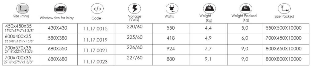 The Thermoelectric Glass has its constructive model patented by Glasart, using the resistance technology printed on the material itself. It has an aluminum frame and is offered in two models, countertop and built-in.