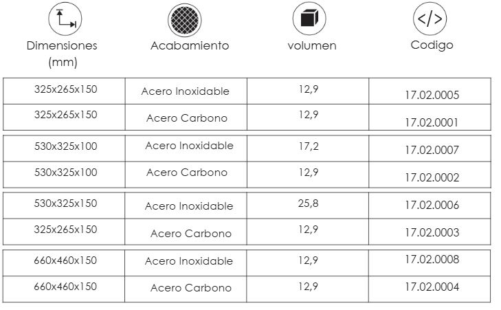 Están fabricados en acero al carbono con pintura electrostática negra o acero inoxidable.