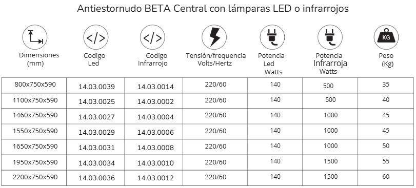 Los antiestornudos Beta están disponibles en 2 modelos, uno para uso central con una profundidad de cobertura de 750 mm y otro para uso lateral, con una profundidad de cobertura de 650 mm. Pueden suministrarse con iluminación LED para pistas frías o con una lámpara infrarroja que ayuda a calentar los alimentos.