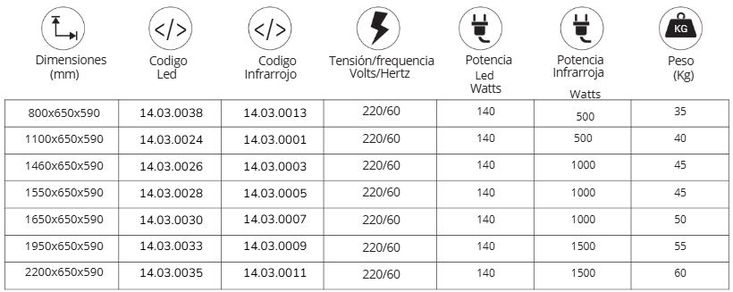 Post-Operación: Después de apagar el sistema de iluminación, espere a que la canaleta y los vidrios superiores se enfríen en el caso de los protectores con lámparas infrarrojas y limpie las partes con un paño húmedo y jabón suave para las partes metálicas y el vidrio. También puede usar limpiador de vidrio si los vidrios están a temperatura ambiente.