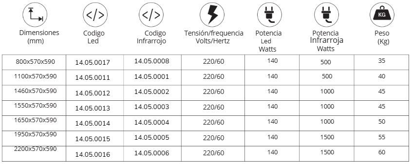 Post-Operación: Después de apagar el sistema de iluminación, espere a que la canaleta y los vidrios superiores se enfríen en el caso de los protectores con lámparas infrarrojas y limpie las partes con un paño húmedo y jabón suave para las partes metálicas y el vidrio. También puede usar limpiador de vidrio si los vidrios están a temperatura ambiente.