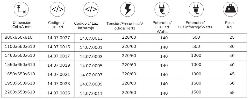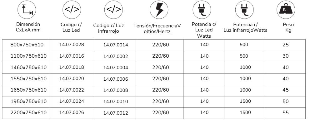 Tienen la opción de iluminación LED fría o iluminación infrarroja para buffets calentados y también iluminación LED en el lateral para mejorar aún más el ambiente.