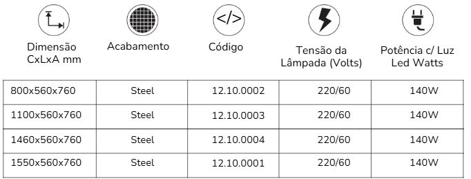 O vidro inclinado garante maior proteção e higiene dos alimentos. A borda de segurança não possui aquecimento, para evitar acidentes ou sustos ao se tocar indevidamente na superfície.