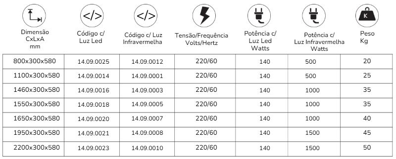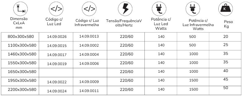 Permite a perfeita proteção nos dois serviços do buffet, tanto nos pratos quentes com o uso de lâmpada infravermelha como nos frios com iluminação a LED e atendem às normas de segurança.